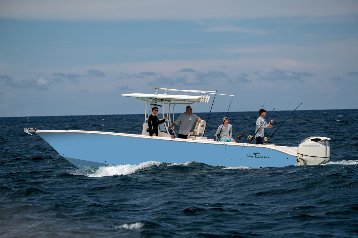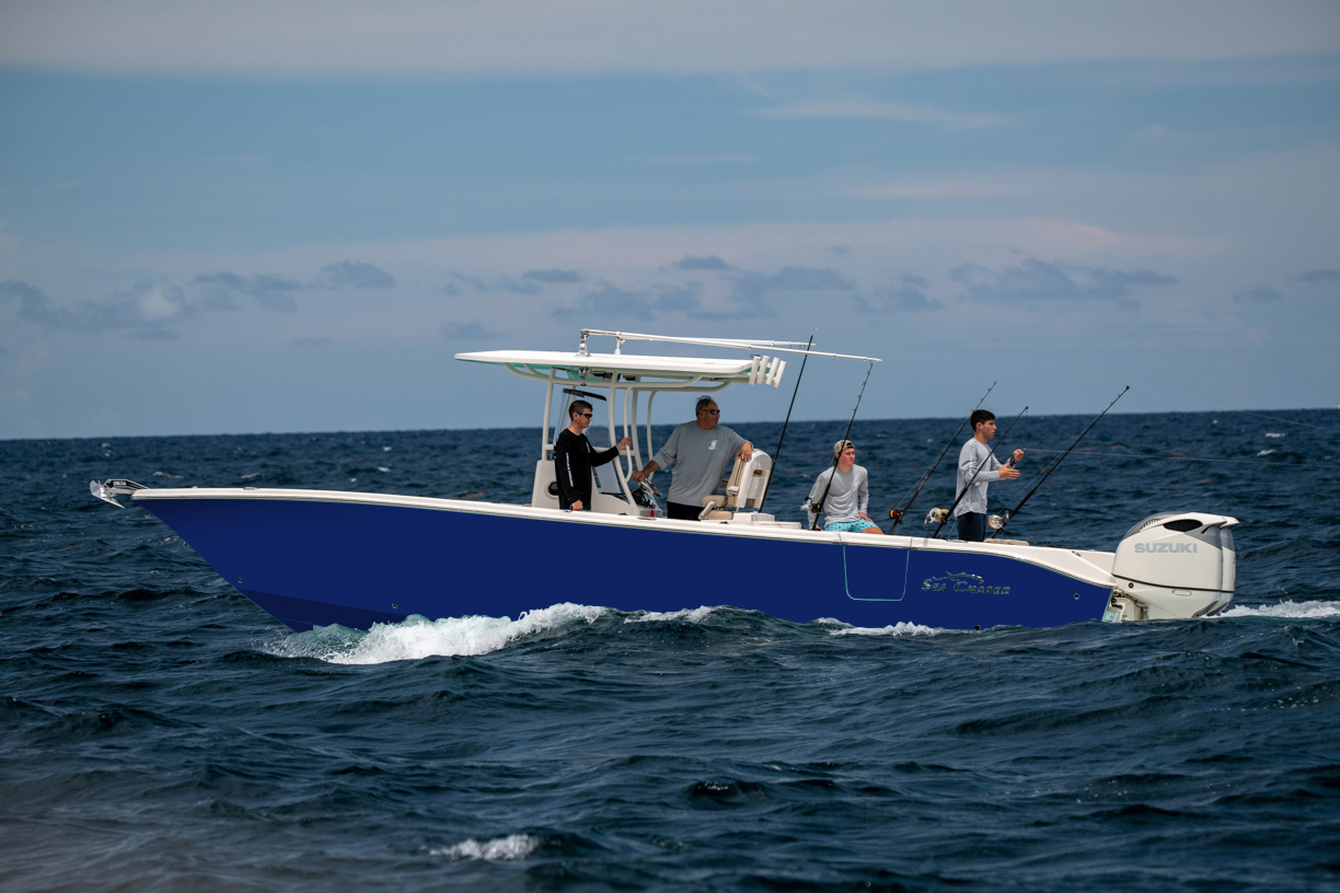 Introducing the 2025 model year 30 HFC Bluewater Series – a sought-after boat beloved by the pros, such as Captain Don Dingman from TV's Hook The Future. The 30 HFC is not only perfect for anglers, but also for families with features like the port-side entry door, fully electric head with Corian countertops, and stern swim platform for easy and safe access in and out of the water. Throughout the 30 HFC, find high-quality stainless steel hardware, such as fold-down cleats and flush-mounted rod holders, as well as comfortable deluxe two tone upholstery and plenty of seating. The 30 HFC features an in-floor fish box that easily doubles as storage and two livewells. Captain Don said, "I don't think you can find a better boat for the money than the 30 HFC. Take it from me, the 30 HFC delivers. I've been 80 miles out in the Atlantic with my family onboard. I wouldn't do that on just any center console, and you won't believe the price. This boat has it all with plenty of room to customize to your specific needs." Find a dealer near you today to see the 2025 model year 30 HFC Bluewater Series!