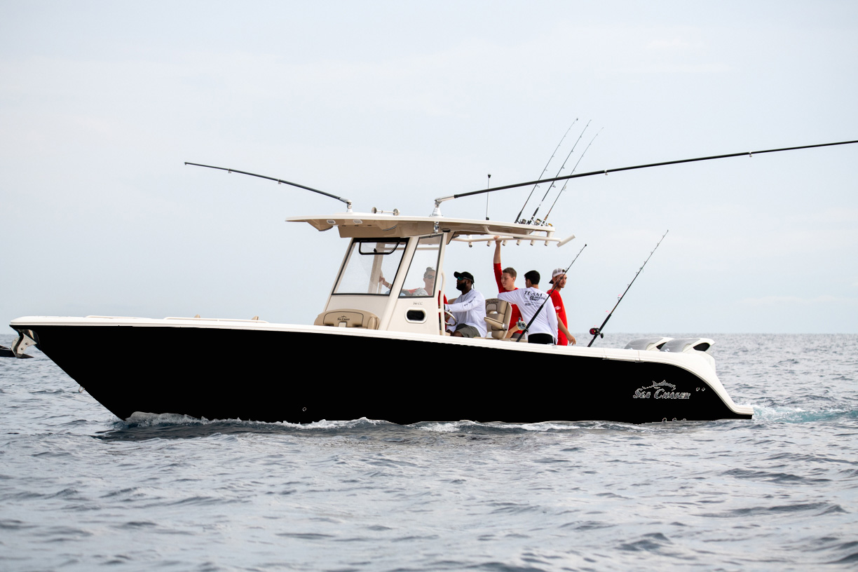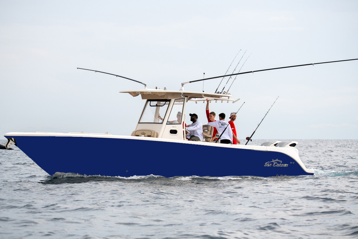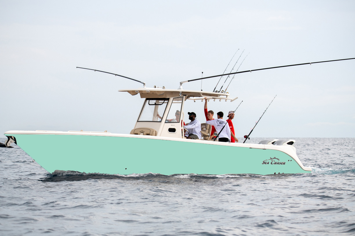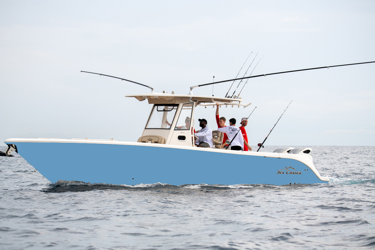 Unbeatable performance and exceptional made-in-the-USA craftsmanship define the new 2025 model year 35 HFC Bluewater Series. The minds at Sea Chaser developed a center console that not only delivers unparalleled execution at sea, but one that turns those long offshore excursions into hours of enjoyable rides. Throughout the 35 HFC, find features and amenities that everyone can appreciate, such as the spacious head with Corian countertops, state-of-the-art console electronics and premium stainless steel cleats, cup holders and hardware. With large bait wells, a roomy deck and ample rod storage, the 35 HFC is a sought-after center console by professional anglers, charter captains and everyday fishing enthusiasts. From bow to stern, the 35 HFC offers more standard features than any other competitive boat in the industry. Find a dealer near you today to see the 2025 model year 35 HFC Bluewater Series.